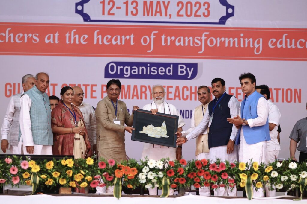વડાપ્રધાન નરેન્દ્રભાઇ મોદીએ આઝાદીના અમૃતકાળમાં વિકસીત રાષ્ટ્ર તરીકે આગળ વધવાના ભારતના સંકલ્પમાં શિક્ષકોની ભૂમિકા મહત્વપૂર્ણ ગણાવી છે. અખિલ ભારતીય પ્રાથમિક શિક્ષક સંઘના ર૯માં દ્વિવાર્ષિક અધિવેશનનો પ્રારંભ વડાપ્રધાનએ ગાંધીનગરના વલાદથી કરાવ્યો હતો. ‘ભારત મેં પરિવર્તનકારી શિક્ષા કે કેન્દ્ર મેં શિક્ષક’ વિષયવસ્તુ સાથે યોજાઇ રહેલા આ અધિવેશનમાં વડાપ્રધાનએ ગુજરાતમાં શિક્ષકો સાથેના તેમના અનુભવોને યાદ કરતાં જણાવ્યું કે ગુજરાતના શિક્ષકો સાથેના અનુભવો રાષ્ટ્રીયસ્તરે શિક્ષા નીતિના ઘડતરમાં તેમના માટે દિશાદર્શક બન્યા છે. ‘હું આજીવન વિદ્યાર્થી છું’ તેવું ગૌરવભેર જણાવતાં વડાપ્રધાનએ શિક્ષકોની મહત્તા દર્શાવતા કહ્યું કે આઝાદીના આ અમૃતકાળમાં વિકસિત રાષ્ટ્ર બનવાના સંકલ્પ સાથે ભારત જ્યારે આગળ વધી રહ્યું છે, ત્યારે તેમાં શિક્ષકોની ભૂમિકા અત્યંત મહત્ત્વની બની રહેવાની છે. દેશ-વિદેશના મહાનુભાવો સાથેના પ્રસંગોની વાત કરતાં તેમણે જણાવ્યું કે વિશ્વના વિવિધ દેશોના રાજપુરુષોએ અનેક વખત તેમના જીવન ઘડતરમાં ગુજરાતના અને ભારતના શિક્ષકોએ મહત્ત્વનું યોગદાન આપ્યું હોવાનું ગર્વભેર જણાવ્યું છે. રાષ્ટ્રીયસ્તરે નવી શિક્ષણનીતિ દેશના લાખો શિક્ષકોના અનુભવો અને યોગદાનનો નીચોડ હોવાનું જણાવી વડાપ્રધાનએ ગુજરાતના મુખ્યમંત્રી તરીકેના તેમના અનુભવો યાદ કરતાં કહ્યું કે આજે ગુજરાતે દેશભરમાં શિક્ષણક્ષેત્રે ટોચનું સ્થાન મેળવ્યું છે, ત્યારે એક સમયે અહીંનો ડ્રોપઆઉટ રેશિયો ૪૦ ટકાની નજીક હતો. જેમાં વિદ્યાર્થિનીઓની સંખ્યા સૌથી વધુ હતી. જ્યારે આદિવાસી વિસ્તારોમાં વિજ્ઞાનના વિષયો ભણીને ડૉક્ટર કે એન્જિનિયર બનનારા વિદ્યાર્થીઓ નહીંવત હતા. તેની સાથે આજની શિક્ષણનીતિના પરિણામે ડ્રોપઆઉટ રેશિયો ઘટીને ત્રણ ટકાની અંદર આવી ગયો છે, જ્યારે ઉંમરગામથી અંબાજી સુધી અનેક વિજ્ઞાનશાળાઓ બની છે. જેના પરિણામે અનેક આદિવાસી વિદ્યાર્થીઓ ડૉક્ટર અને એન્જિનિયર બન્યા છે. ૨૧મી સદીના બદલાતાં વિશ્વમાં ભારતની શિક્ષણ વ્યવસ્થા અને છાત્રોના અભિગમ પરિવર્તનશીલ રહ્યા છે. આ પરિસ્થિતિમાં કેવી રીતે આગળ વધવું એ શિક્ષકો માટે ચિંતનનો વિષય છે. એક સમયે સંસાધનો અને માળખાકીય સુવિધાઓની ઘટ હતી. જે આજે દૂર થઈ છે. એટલું જ નહીં, વિદ્યાર્થીઓમાં વધેલાં કૂતુહલ અને જિજ્ઞાસા શિક્ષકો માટે પણ પડકારરૂપ બન્યા છે. આજનો ૮-૯ વર્ષનો વિદ્યાર્થી પણ અલગ દૃષ્ટિકોણ અને અભિગમ સાથે શિક્ષકોને પ્રશ્નો પૂછે છે. તેમણે ઉમેર્યું કે આજે આપણી પાસે માહિતીના અનેક સ્રોત છે, પરંતુ તેમનો વિવેકપૂર્ણ અને યોગ્ય ઉપયોગ કરવાનું દિશાદર્શન શિક્ષકોએ કરવાનું છે. પરિણામે, શિક્ષકોએ પણ સતત અપડેટ રહેવું અત્યંત જરૂરી છે. શિક્ષકે શિક્ષણ સાથે સ્વયં છાત્રના ગાઇડ અને 