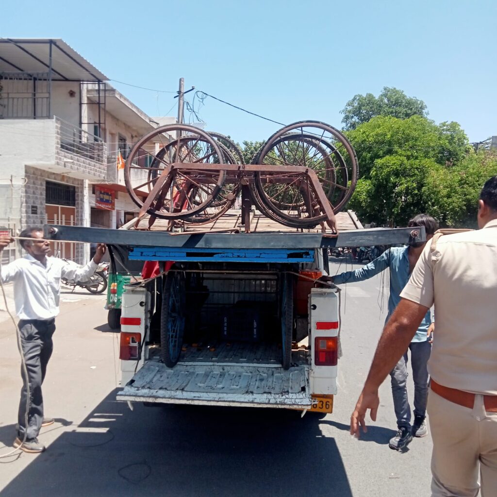 રાજકોટ મહાનગરપાલિકાની દબાણ હટાવ શાખા દ્વારા તારીખ:૧૦/૦૫/૨૦૨૩ થી ૧૫/૦૫/૨૦૨૩ સુધીની રાજકોટ શહેરમાં જુદી જુદી જગ્યાએ જાહેર માર્ગો પર દબાણ રૂપ એવા રેકડી-કેબીન, અન્ય ચીજવસ્તુઓ, શાકભાજી-ફળો જપ્તી તેમજ પશુઓને આપવામાં આવતું લીલું, બોર્ડ-બેનરો વગેરે જપ્ત કરવાની કામગીરી કરવામાં આવેલ છે.